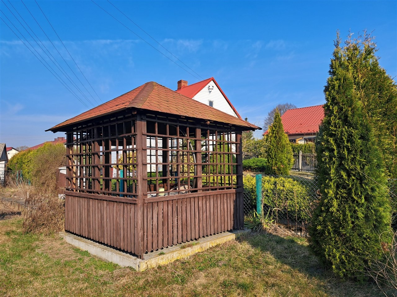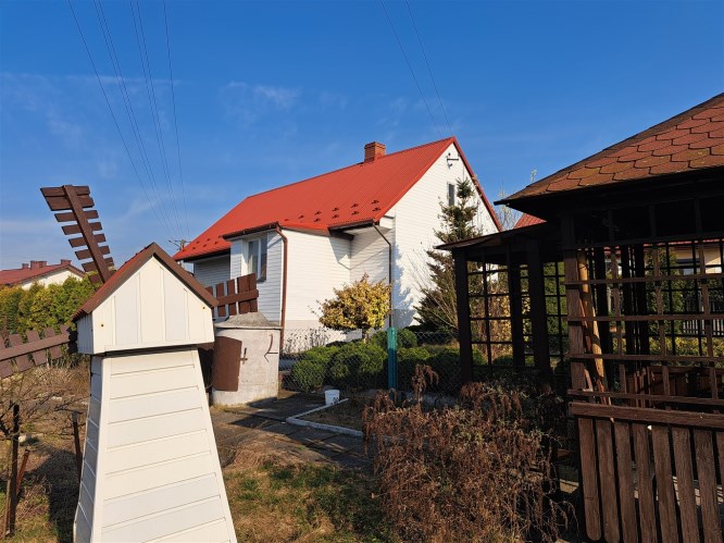 Dom położony jest na działce o pow.575m2, na posesji znajduje się jeszcze drewniana altana.Teren nieruchomości ogrodzony.