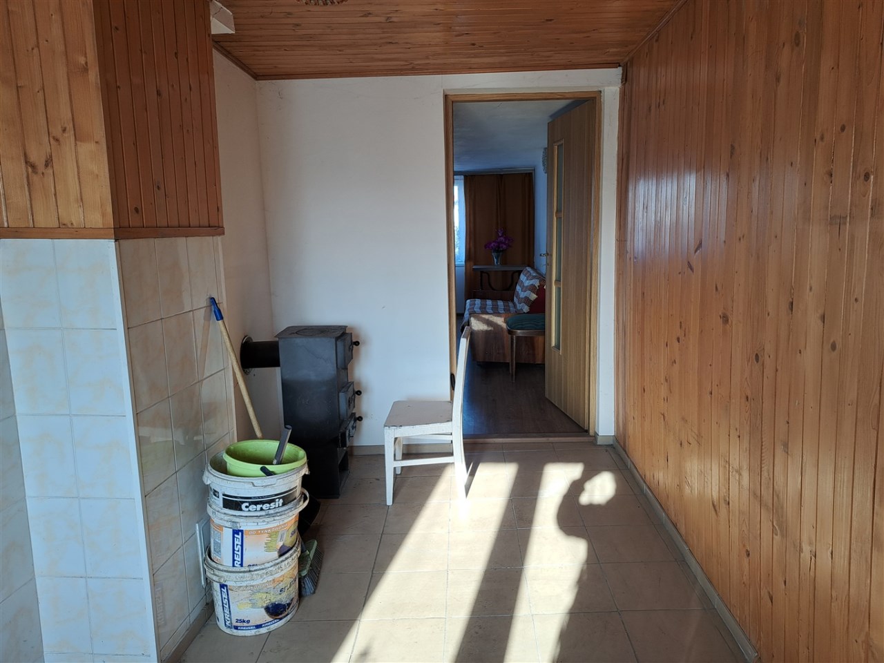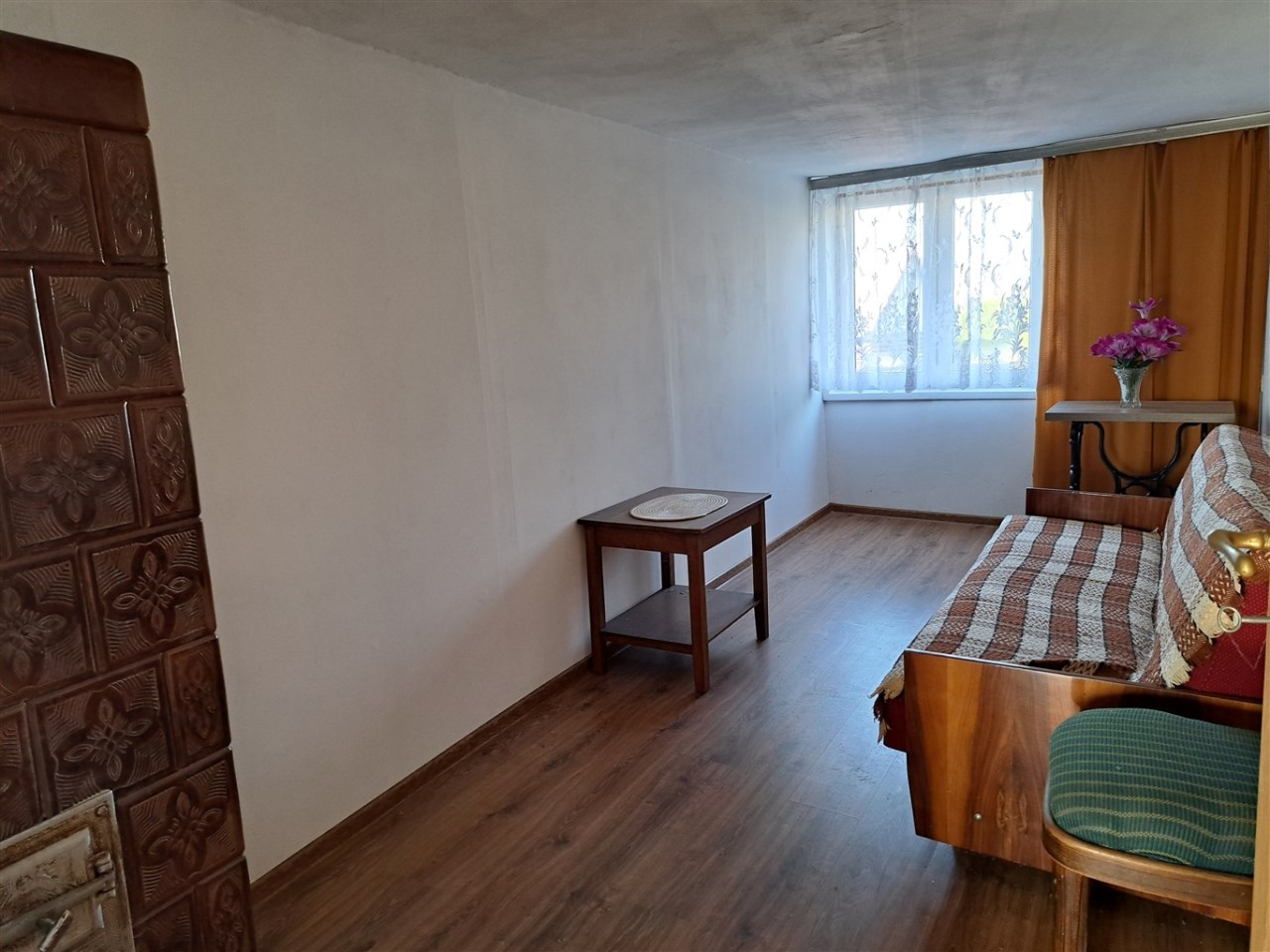 Brak centralnego ogrzewania w budynku, do ogrzewania służą  piecyk typu koza w kuchni i piec kaflowy w pokoju.