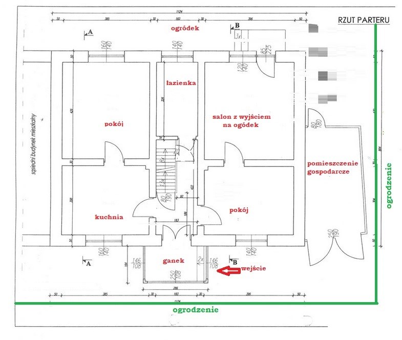 -parter: ganek, przedpokój, 3 pokoje, kuchnia, łazienka.