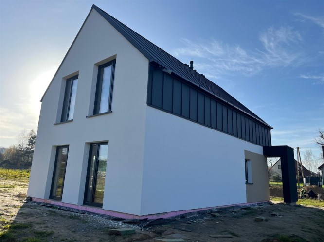 Oferowany dom będzie sprzedany w stanie surowym zamkniętym wraz z elewacja zewnętrzną, co obejmuje:
