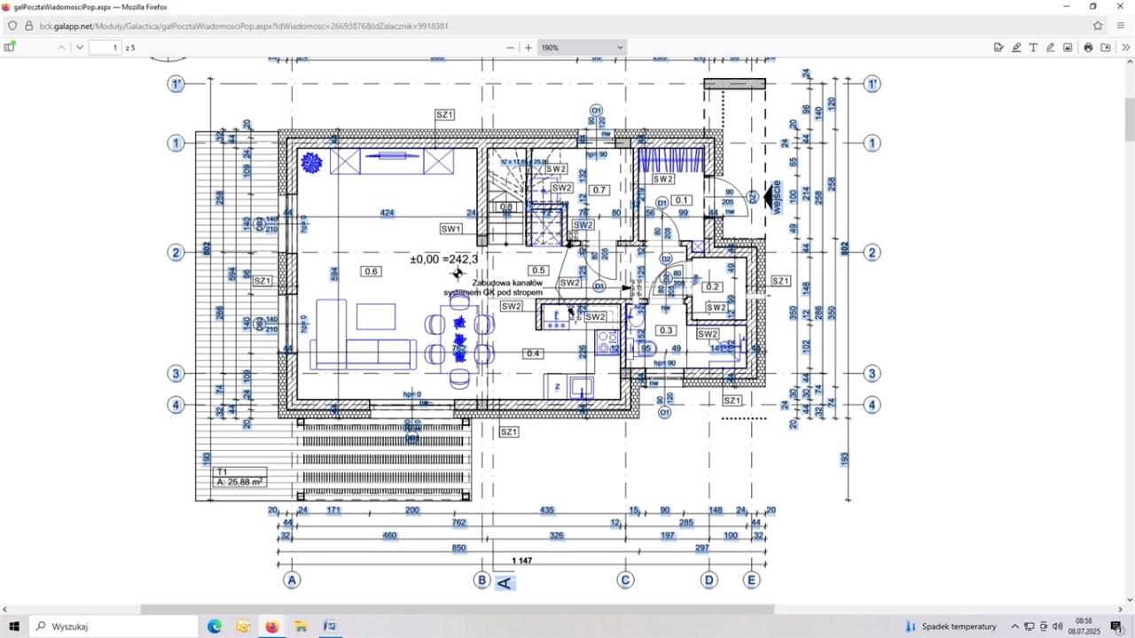 Powierzchnia użytkowa domu wynosi 105,86m2.