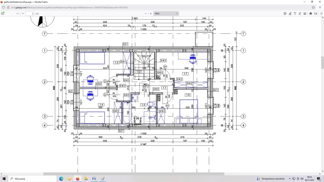 - 4 sypialnie o pow. 9,49 m2 9,47 m2 , 8,39 m2 , 9,67 m2