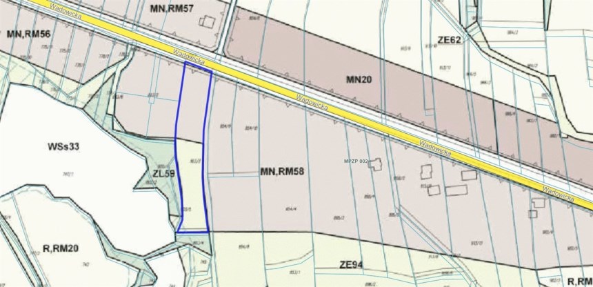 Działka leży bezpośrednio przy ul.Wadowickiej.